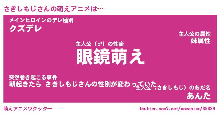 | 男性向けラノベタイトル風あだ名 | 『さきしもじの憂鬱』 |