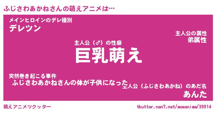 | 男性向けラノベタイトル風あだ名 | 『ふじさわあかねの憂鬱』 |