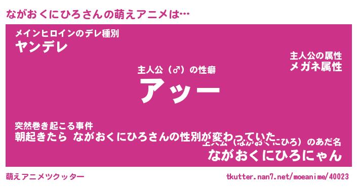 | 女子向けラノベタイトル風あだ名 | 『誰かこのながおくにひろを説明してください! ~契約から始まるウェディング~』 |