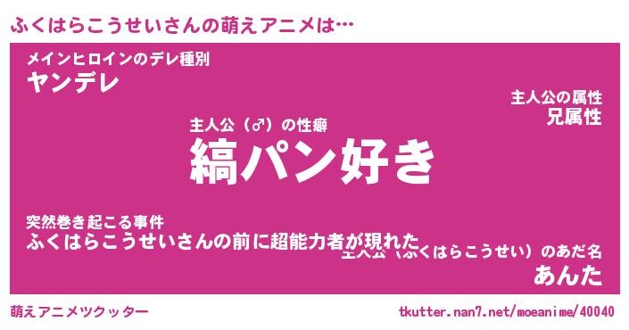 | 女子向けラノベタイトル風あだ名 | 『(仮)ふくはらこうせいのやんごとなき事情』 |