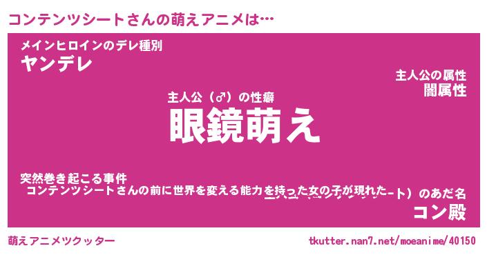 | 男性向けラノベタイトル風あだ名 | 『コンテンツシートの憂鬱』 |
