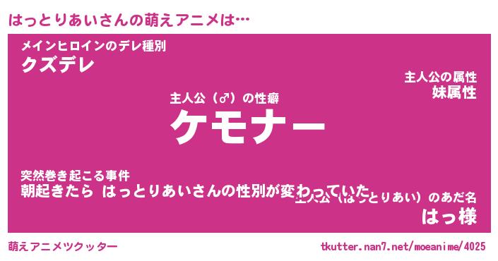 | 胡散臭い通販商品みたいなあだ名 | 『億万長者になれるブレスレット…その名も「はっとりあい」』 |