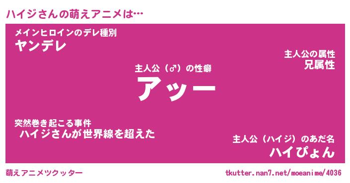 | 男性向けラノベタイトル風あだ名 | 『ハイジアートオンライン』 |