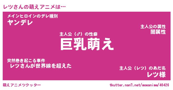 | 男性向けラノベタイトル風あだ名 | 『レツの憂鬱』『ノーゲーム・ノーレツ』 |