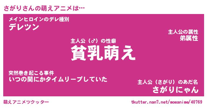 | 男性向けラノベタイトル風あだ名 | 『さがりの憂鬱』 |
