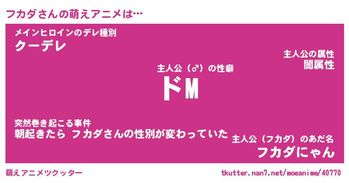 | 男性向けラノベタイトル風あだ名 | 『フカダの憂鬱』 |