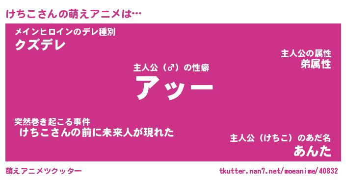 | 意味不明あだ名 | 『ペロリンけちこ』『けちこフォーエバー』 |