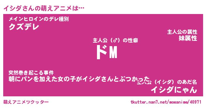 | 男性向けラノベタイトル風あだ名 | 『イシダの憂鬱』 |