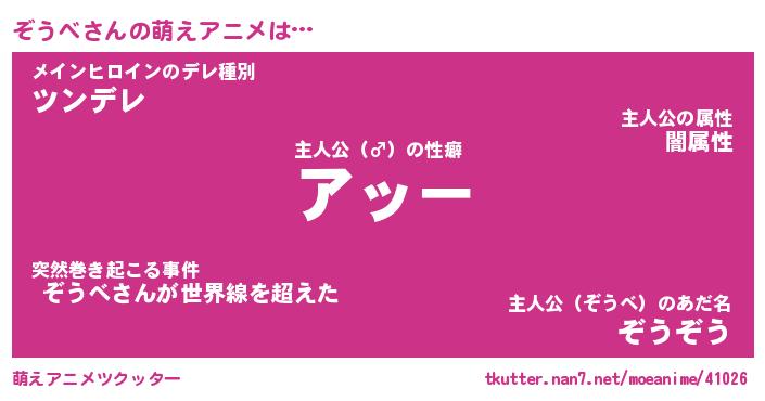 | 男性向けラノベタイトル風あだ名 | 『ゾウベアートオンライン』 |