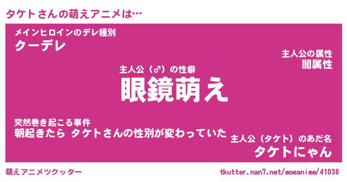 | 男性向けラノベタイトル風あだ名 | 『タケトの憂鬱』 |