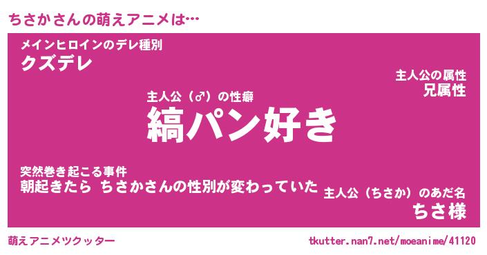 | 男性向けラノベタイトル風あだ名 | 『ちさかの憂鬱』 |