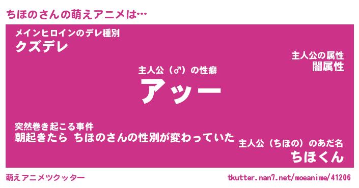 | 男性向けラノベタイトル風あだ名 | 『チホノアートオンライン』 |