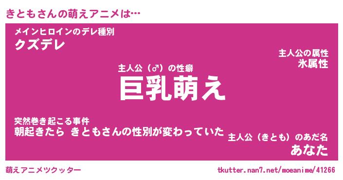 | 男性向けラノベタイトル風あだ名 | 『きともの憂鬱』 |