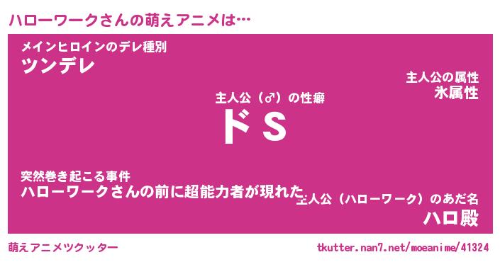 | 女子向けラノベタイトル風あだ名 | 『(仮)ハローワークのやんごとなき事情』 |