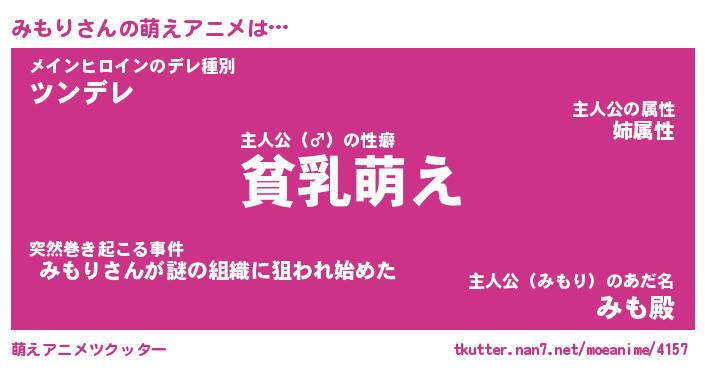 | 男性向けラノベタイトル風あだ名 | 『みもりの憂鬱』 |