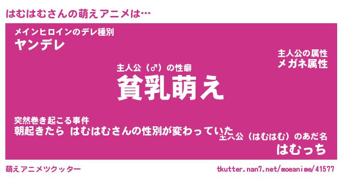 | 男性向けラノベタイトル風あだ名 | 『はむはむの憂鬱』 |