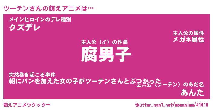 | 男性向けラノベタイトル風あだ名 | 『ツーテンアートオンライン』 |