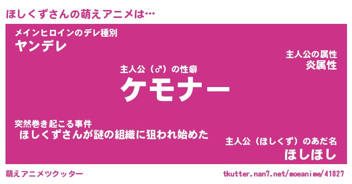 | ファンタジー風あだ名 | 『ホシフェル』『エターナルホシクズー』 |