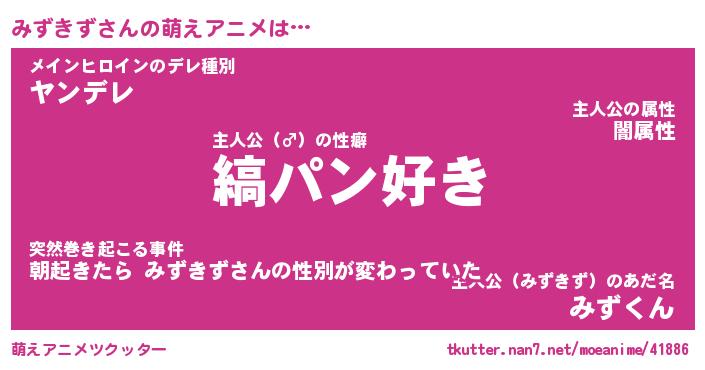 | 男性向けラノベタイトル風あだ名 | 『みずきずの憂鬱』 |
