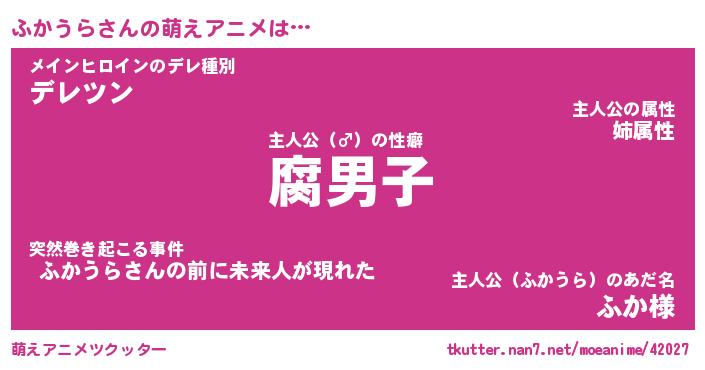| 男性向けラノベタイトル風あだ名 | 『フカウラアートオンライン』 |