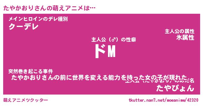| 男性向けラノベタイトル風あだ名 | 『たやかおりの憂鬱』 |