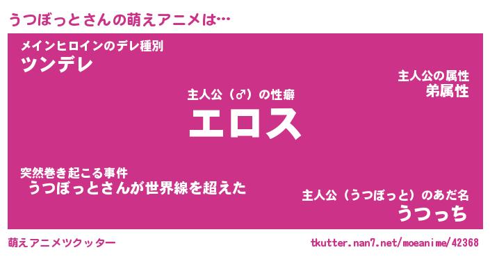 | ファンタジー風あだ名 | 『ウツフェル』『エターナルウツボットー』 |