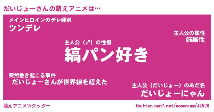 | 男性向けラノベタイトル風あだ名 | 『だいじょーの憂鬱』 |