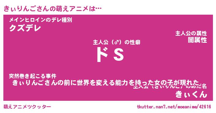 | 男性向けラノベタイトル風あだ名 | 『きぃりんごの憂鬱』 |