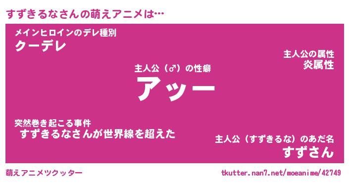 | ヒーロー風カッコイイあだ名 | 『スーパースズキルナ』『炎刃騎士スズ』 |
