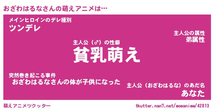 | 男性向けラノベタイトル風あだ名 | 『おざわはるなの憂鬱』 |