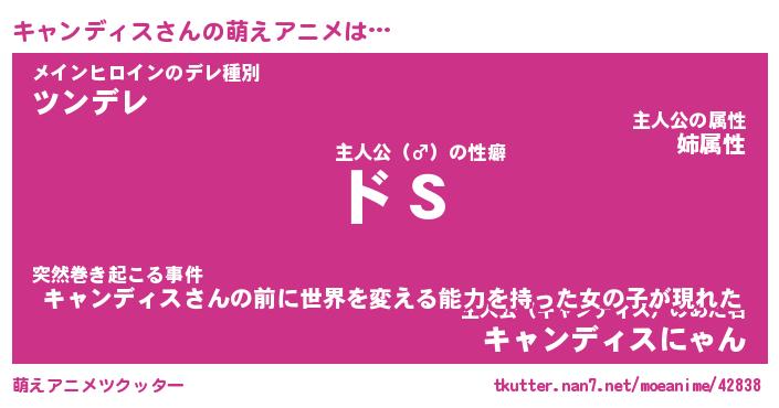 | 女子向けラノベタイトル風あだ名 | 『(仮)キャンディスのやんごとなき事情』 |
