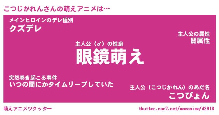| 男性向けラノベタイトル風あだ名 | 『こつじかれんの憂鬱』 |