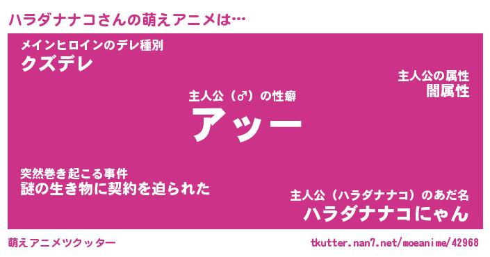 | 女子向けラノベタイトル風あだ名 | 『誰かこのハラダナナコを説明してください! ~契約から始まるウェディング~』 |