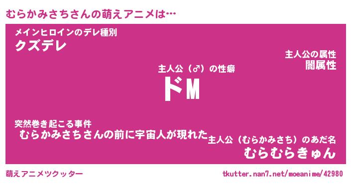 | 女子向けラノベタイトル風あだ名 | 『(仮)むらかみさちのやんごとなき事情』 |