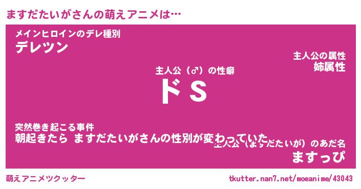 | 女子向けラノベタイトル風あだ名 | 『(仮)ますだたいがのやんごとなき事情』 |
