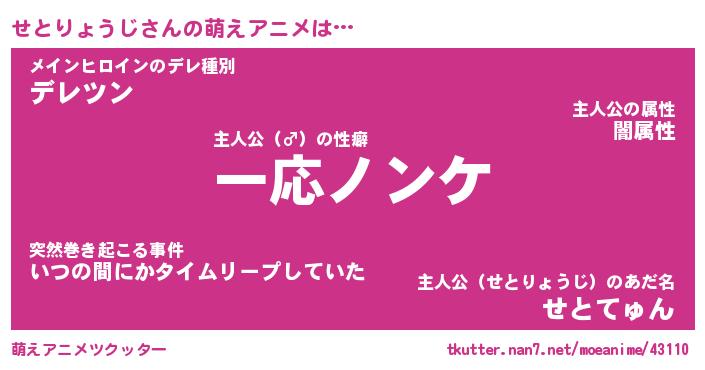 | 男性向けラノベタイトル風あだ名 | 『セトリョウジアートオンライン』 |