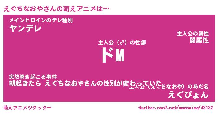 | 男性向けラノベタイトル風あだ名 | 『えぐちなおやの憂鬱』 |