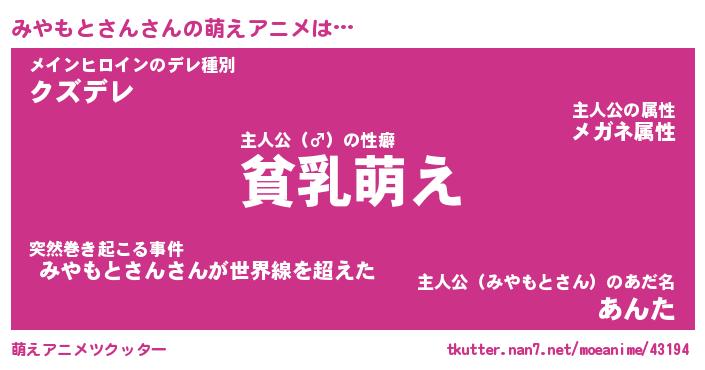 | 男性向けラノベタイトル風あだ名 | 『みやもとさんの憂鬱』 |