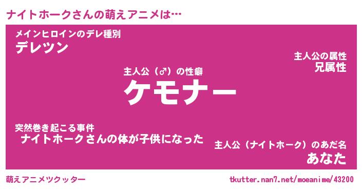 | 女子向けラノベタイトル風あだ名 | 『誰かこのナイトホークを説明してください! ~契約から始まるウェディング~』 |