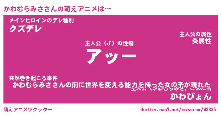 | ヘコむあだ名 | 『かわにー』『豆乳』『かわっ子』 |