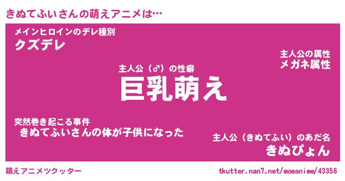 | 男性向けラノベタイトル風あだ名 | 『きぬてふいの憂鬱』 |