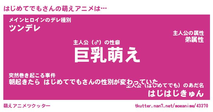| 男性向けラノベタイトル風あだ名 | 『はじめてでもの憂鬱』 |