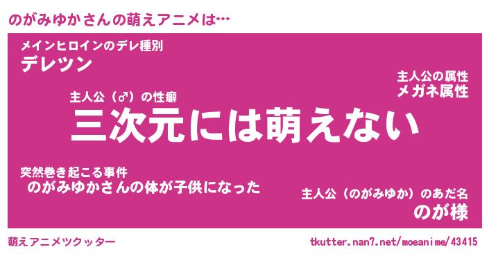 | ヘコむあだ名 | 『のがにー』『豆乳』『のがを』 |