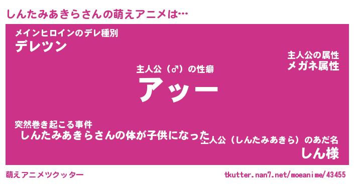 | 女子向けラノベタイトル風あだ名 | 『誰かこのしんたみあきらを説明してください! ~契約から始まるウェディング~』 |