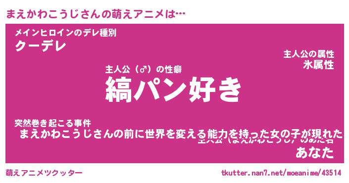 | 女子向けラノベタイトル風あだ名 | 『(仮)まえかわこうじのやんごとなき事情』 |