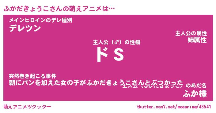 | 男性向けラノベタイトル風あだ名 | 『ふかだきょうこの憂鬱』 |