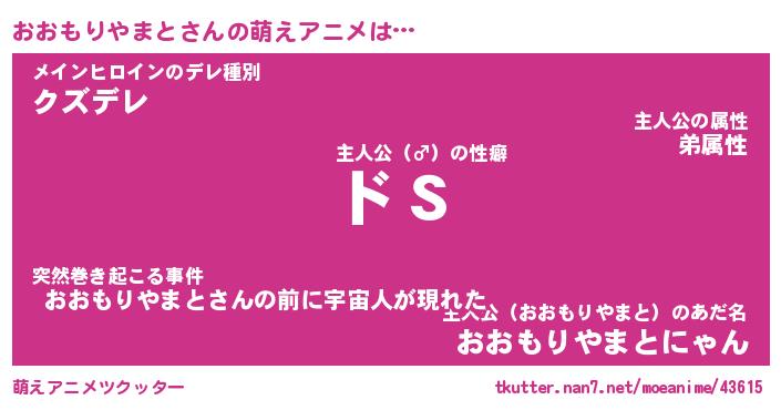 | 男性向けラノベタイトル風あだ名 | 『おおもりやまとの憂鬱』 |