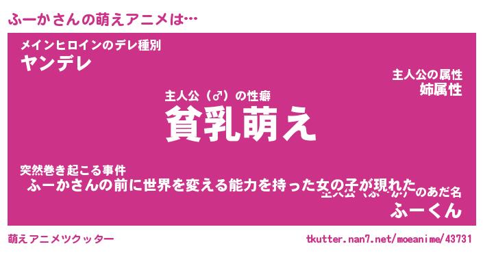 | 男性向けラノベタイトル風あだ名 | 『ふーかの憂鬱』 |