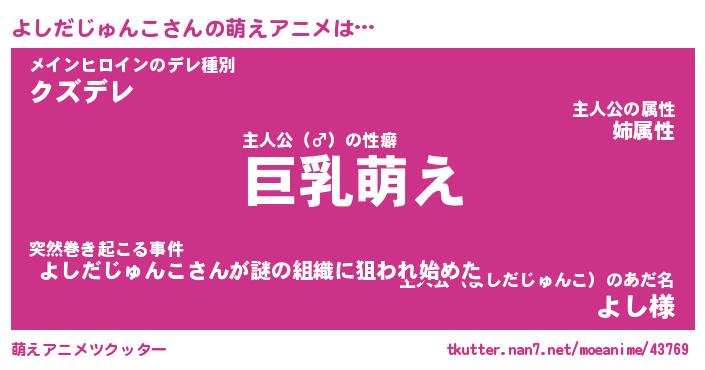 | 男性向けラノベタイトル風あだ名 | 『よしだじゅんこの憂鬱』 |