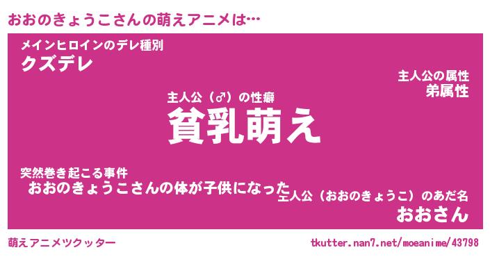 | 女子向けラノベタイトル風あだ名 | 『(仮)おおのきょうこのやんごとなき事情』 |